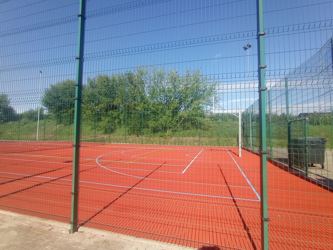- wymianę uszkodzonych paneli ogrodzeniowych boiska,